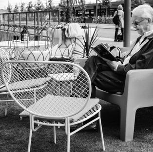 IN SAWANT'S ON READING, the act of reading becomes a thread running through the urban fabric—an unexpected stillness within a restless environment. Whether it is a folded newspaper catching morning light, a paperback held like a small shelter, a smartphone glowing in a commuter’s hand, or a tablet angled just so on a café table, each reader creates a momentary refuge in the midst of movement. Sawant’s lens lingers not on spectacle but on these small, concentrated gestures of attention, each one a portal into a private world carried through public space.